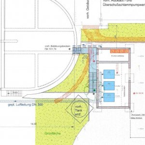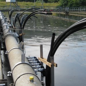 Nach fast 25 Jahren Betriebszeit waren die Kreiselbelüfter abgängig und es musste eine Neuausrüstung erfolgen. Aufgrund der hohen Effizienz von Plattenbelüftern wurde die derzeitige Oberflächenbelüftungauf die Feinblasige Druckbelüftung eingestellt.