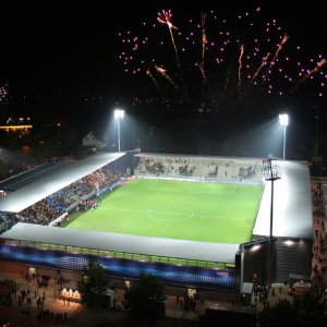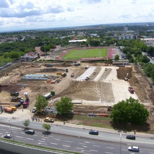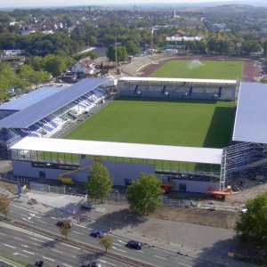 | Projektdaten | BRI: 6.200 m³ Zuschauerkapazität: 13.500 Funktionsgebäude mit rd. 2.300 m² auf drei Ebenen, Logenebene, VIP-Ebene und Funktionsbereich für Mannschaften |
