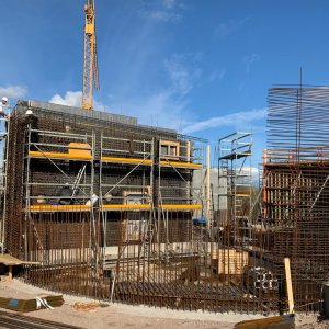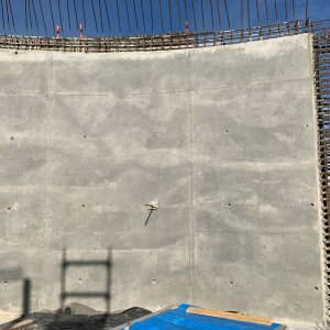 Neubau eines Stahlbeton-Rundbehälters mit integrierter Vorkammer und Y-förmigen Trennwänden.